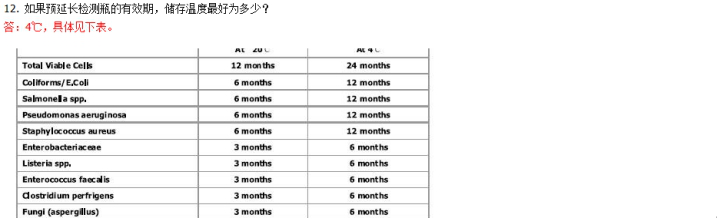 | 1. 微生物檢測瓶除可以檢測活菌外,死菌可以檢測么? 答:不能檢測死菌。 | 2. 微生物檢測瓶可以檢測厭氧菌么? 答:檢測瓶的檢測范圍即包括厭氧菌(亞硫酸鹽梭狀芽胞桿菌 Sulphite reducing Clostridia,產氣莢膜桿菌 Clostridium perfrigens),也包括需氧菌。 檢測不同種微類生物的檢測瓶中試劑不同。對于厭氧菌,我們有特殊的試劑,如檢測產氣莢膜桿菌 Clostridium perfrigens。 | 3. 檢測瓶的檢測原理都分別用到了哪些檢測方法? 答:培養(yǎng)皿法、酶法、免疫法、基因法。 | 4. 對于第 3 題,你能簡要敘述這些方法的優(yōu)劣勢么? 答:與傳統(tǒng)的培養(yǎng)基法、膠體金、酶免法和 PCR 法不同,德國皇家微生物檢測儀是多種方法的集合。單獨使用一種檢測方法都有自己的缺點:比如, PCR 法需要專業(yè)技術人員和昂貴設備; 培養(yǎng)基法操作復雜; 膠體金法靈敏度低; 酶免法特異性捕捉不充分。 德國皇家微生物檢測瓶快速檢測系列產品是以上多種方法的綜合運用,吸收了每種方法的優(yōu)點,彌補了各種方法的不足。 | 5. 用微生物檢測瓶進行微生物檢測時,步是先放樣本還是無菌水? 答:都可以。 | 6. 對樣本進行微生物接種時,需要在無菌環(huán)境下進行么? 答:檢測瓶是通過捕捉特異性,結合多種檢測法進行分析。無菌環(huán)境與否均可(臨檢的場所大都是非無菌環(huán)境)。 | 7. 檢測瓶可以檢測表面樣本和固態(tài)樣本么? 答:可以檢測固態(tài)、液態(tài)、表面樣本(用所配棉棒沾濕無菌水后涂抹表面)。紙漿等膏狀、糊狀、粘稠狀昂本都可以檢測。 | 8. 檢測瓶在檢測固態(tài)樣本時需要對進行研磨、稀釋等前處理過程么? 答:直接將樣本放入檢測瓶,無需任何前處理。 | 9. 每次檢測的無菌水用量是多少? 答:一般是 11ml。如果是檢測液態(tài)樣本或水樣本,建議加樣 1ml,加無菌水 10ml。 | 10. 放入樣本和無菌水后,“搖勻使其充分溶解和混合”這一操作步驟,無論定性分析還是定量分析,都是必要的步驟么? 答:是的,搖勻無論是定性還是定量分析都是必要步驟。 | 11. 不同的微生物對應的孵育溫度是一樣的么?請舉例說明。 答:不一樣。37 攝氏度居多:活菌總數、沙門氏菌、李斯特菌等,大腸桿菌 44 攝氏度等,詳細請參考對照表。 | 12. 若是檢測冷菜或者冰欺凌這樣的樣本,孵育是否應該低溫進行? 答:對檢測樣本自身的溫度沒有限制,檢測樣本中微生物,請嚴格遵照所檢測微生物對應的孵育溫度,依然根據對照表。 | 13. 如果想加快檢測時間,孵育溫度可以調至高于所檢測微生物對應的孵育溫度? 答:不可以,嚴格遵照對照表。 | 14. 操作手冊規(guī)定放入的樣本量為多少? 答:0.1g‐1.0g 或 0.1ml‐1.0ml。 | 15. 若放入的樣本量高于規(guī)定的樣本量,檢測結果會不同,或者檢測結果(定量時)增加么? 答:樣本量多一些或少一些,定量分析結果不會有變化。 原因:傳統(tǒng)的微生物學檢測方法,包括參考方法,即基于固體選擇性培養(yǎng)基的菌落計數法內在的統(tǒng)計分散度(統(tǒng)計名詞,也稱為統(tǒng)計變異,是變量或概率分布蔓延,常見的例子是方差,標準差和四分位距。)大于 50%。很多實驗室已經證實皇家生物檢測法與其他檢測方法比統(tǒng)計分散度低,可信度高。但不管怎樣,25‐30%的統(tǒng)計分散度還是有的。另外,由采樣產生的統(tǒng)計分散度同樣應該考慮在 內,尤其是微生物經常容易繁殖的固態(tài)的肉制品類。 因此,加樣是 0.5g 或 1.5g 所得的結果在統(tǒng)計上是等價的(和其他任何方法獲得的結果相等)。 | 16. 對于面粉這類低密度的散裝樣本,可以照常檢測么? 答:可以。 | 17. 對于醬油這樣的深色樣本,會影響定性檢測結果的判讀么?您有什么好的建議? 答:如果搭配檢測儀進行定量分析,不存在這個問題;如果只是通過肉眼觀察變色進行定性分析,深色樣本如果擔心肉眼不能夠清晰的辨認,建議進行稀釋后再進行檢測。還記得第 15 題得答案么?加樣是 0.5g 或 1.5g 所得的結果在統(tǒng)計上是等價的和其他任何方法獲得的結果相等)。稀釋同樣的道理。 | 18. 如果是檢測水樣,還需要加入無菌水么?加多少? 答:建議加水樣 1ml,無菌水 10ml。 | 19. 不同的微生物對應的開始顏色和呈陽性的顏色都相同么?請舉例說明。 答:不同。 例如,沙門氏菌孵育 10 分鐘左右出現的開始顏色為紅色,陽性顏色為黃色;李斯特菌,開始顏色為藍色,陽性顏色為黃色。具體請參考對照表。 | 20.微生物檢測儀兼?zhèn)浞跤龣C的功能么? 答:是的。將檢測瓶充分搖勻后立即放入檢測儀,在軟件上進行檢測菌類設置后。 檢測儀會自動進行孵育,并自動給出定量分析檢測報告。 | 21. 微生物檢測儀兼?zhèn)湔袷幤鞯墓δ苊矗?br/>答:不具備。需用手用力搖 2‐3 分鐘,或振蕩器搖 20 秒左右,直至充分溶解或混合。 | 22. 微生物檢測儀的判讀原理是什么? 答:微生物檢測儀是一款精密的光學判讀儀。通過光學原理精密探測檢測瓶中的顏色變化,并給出**的定量分析檢測報告。 | 23. 微生物檢測儀是外接電源,還是自帶充電電池? 答:外接電源。 | 24. 微生物檢測儀可以同時、獨立地檢測多少個檢測瓶? 答:8 個。同時、獨立的探測,并分別給出定量分析報告。 | 25. 微生物檢測儀定量分析,需要在電腦上安裝分析軟件么? 答:需要按照配套分析軟件。 | 26. 怎樣的計算機操作系統(tǒng)對該分析軟件兼容? 答:XP, Vista, Windows 7 | 27. 如果檢測儀是初次
